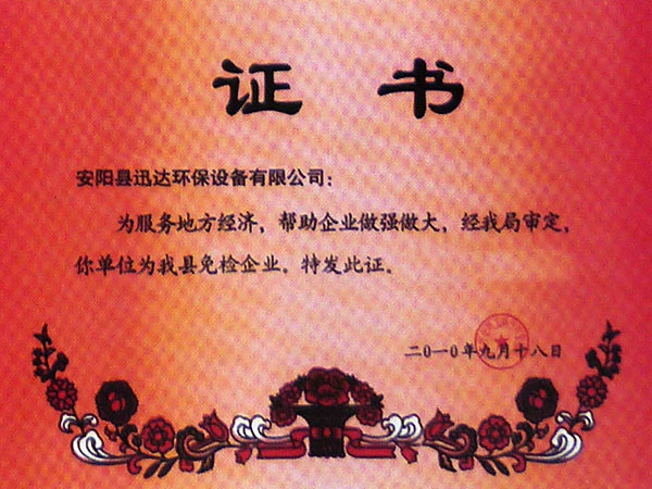 安阳县免检企业证书
